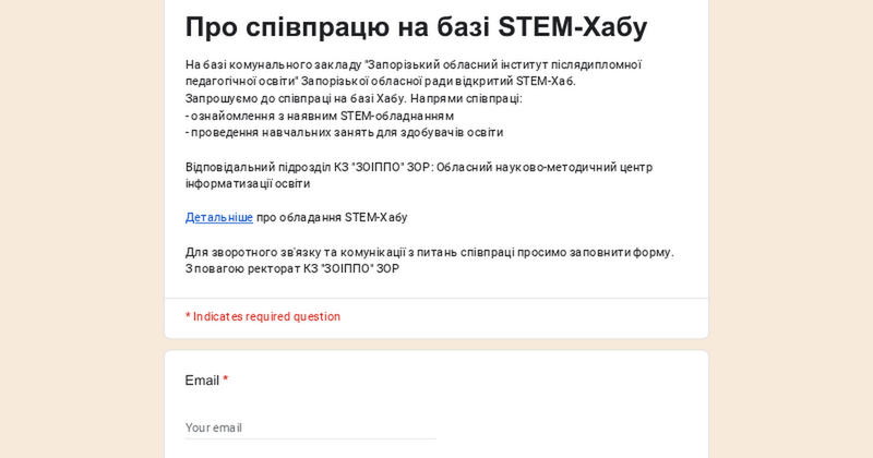 Запрошуємо до співпраці у STEM-Хабі на базі КЗ "ЗОІППО" ЗОР за напрямами: ознайомлення з наявним STEM-обладнанням, проведення навчальних занять для здобувачів освіти .